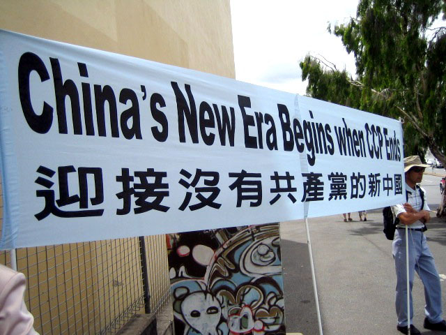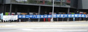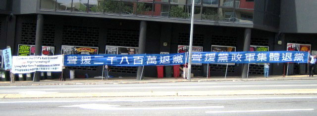 ![]() 布里斯本中国城街头展开的声援三退横幅 |