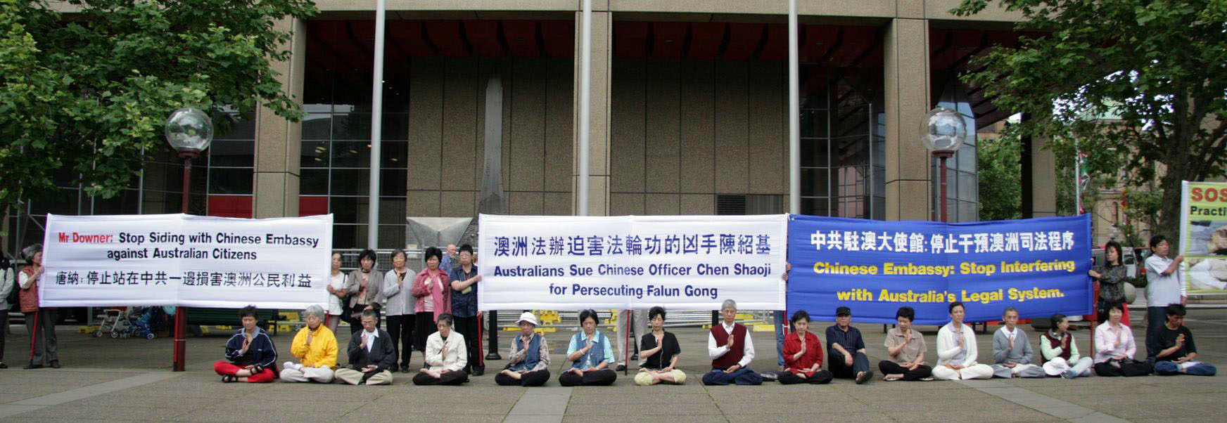 悉尼法轮功学员在澳洲纽省高等法院前抗议中领馆干涉澳洲司法公正