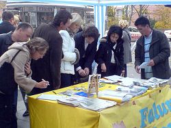 ![]() 签名支持法轮功,呼吁制止迫害!信息台前一整天人来人往,络绎不绝。许多明白了真相的德国民众做出了正义善良的选择!很多人还纷纷鼓励和祝福法轮功学员! |