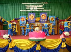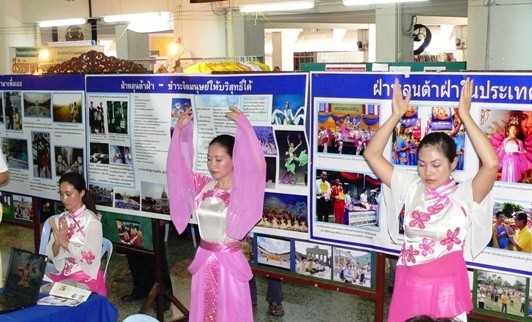 几天中,法轮功学员接连登台演出,表演的龙旗、舞蹈、腰鼓、唱歌等精彩节目,十分引人注目,展现了法轮大法的美好。会展结束时,法轮功学员获得了主办单位的嘉奖。