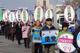 ![]() 韩国清南道天安市,庆祝二千九百万退出中共游行活动 |