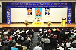 二零零七年十二月十六日,全澳的大法弟子在西悉尼大学召开了澳洲二零零七年法轮大法修炼心得交流会。大家相聚一堂,分享各自修炼的心得,向师尊汇报一年来、尤其自今年纽约回来后,在修炼上的收获提高,以实际行动敬谢师恩。