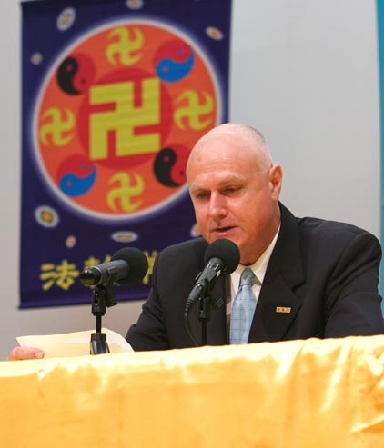 慈悲伟大的师尊给澳洲法会发来了问候。当法会主持向大会宣读师尊发来的贺词时,与会者报以热烈的掌声,深深感谢师父的慈悲鼓励和关怀。