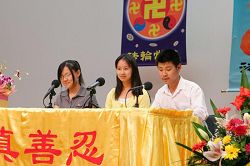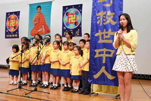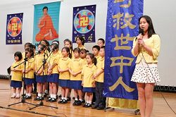 明慧学校的小朋友们在法会上集体背诵了《洪吟》中的诗词并演唱了洪扬大法的歌曲。