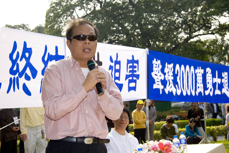他对与会民众表示:「你们的热情和坚持,会是中国人民的一个希望,让他们知道在台湾有这么一群人支持他们,给他们希望。同时透过大纪元的网站传到大陆去,让中国民众了解,在全世界有那么多的人在声援他们,希望他们可以反抗这个暴政,星星之火可以燎原。」
