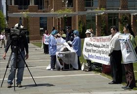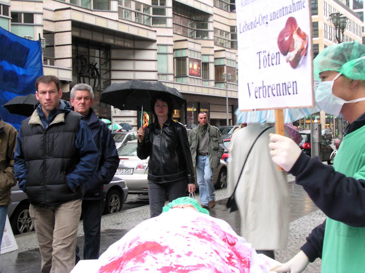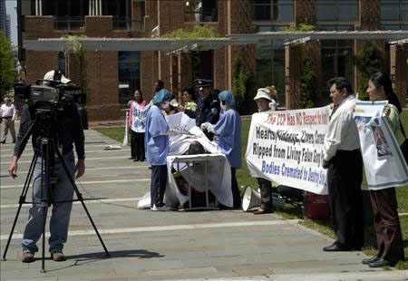 为了能尽快制止中共对法轮功学员的迫害,制止中共活体盗取法轮功学员器官的行为,全世界上百个城市的法轮功学员以模拟演示等方式揭露和抗议中共的暴行。世界各地很多民众看过模拟演示后都主动签名表示对中共的强烈谴责,很多媒体进行公开报导,不少政府官员和社会组织都作了公开谴责中共暴行的发言。