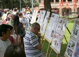 ![]() 二零零七年十二月十五日在澳洲悉尼贝尔莫公园,举行规模盛大的声援三千万退党集会,公园四周真相展板吸引众多的路人驻足观看 |