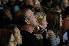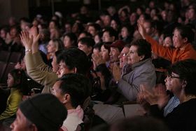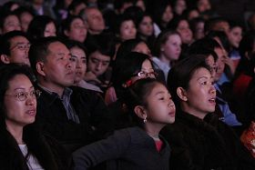 【明慧网二零零七年十二月二十三日】(明慧记者黄凯莉报导)新唐人纽约圣诞晚会在周六,二零零七年十二月二十二日上演两场,很多观众携家带眷观看晚会。演出时,高潮迭起;很多小朋友也深深的为节目所吸引。观众们表示,神韵演出传达东方文化礼仪和伦理道德价值观;节目可净化心灵。