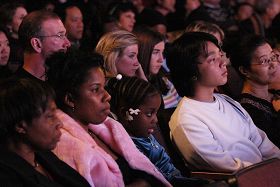 【明慧网二零零七年十二月二十四日】(明慧记者采菊、李静菲、沈君怡纽约报导)音乐声起,观众们聚精会神的注视着演出,沉浸在优美高雅的表演中,鼓掌声此起彼伏。大幕拉起时,赞叹的“哇”从剧场四处悄然而起。