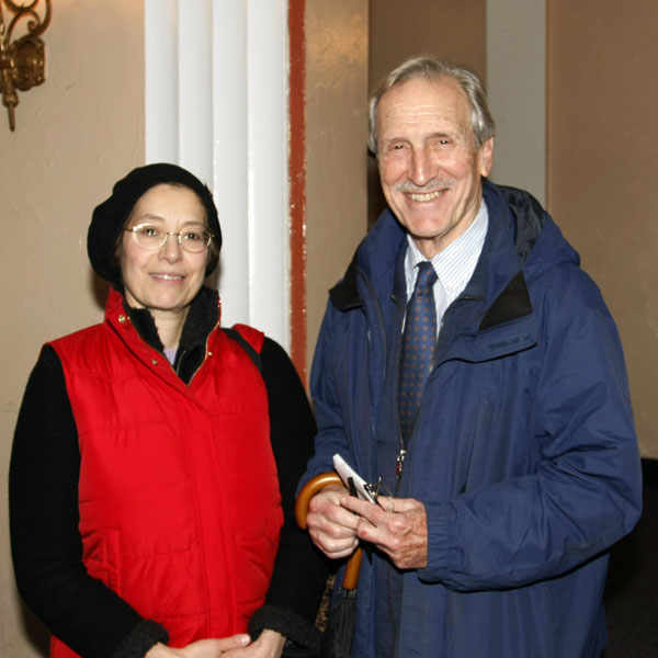 CNN的创办人之一泰德•凡诺(Ted Kavanau)(右)和友人一同观看演出。他说:“在我看来,这是第一流品质的演出,神韵纽约艺术团展示出的每个侧面都是令人炫目的精彩。每个部份都组织的井井有条,我没有预料到会看到这样的演出。”