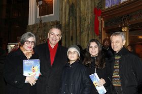 (从左至右)来自南美洲厄瓜多尔的法比欧拉(Fabiola Escobar)、丈夫卡洛斯(Carlos Escobar)、外孙子和女儿一起来看演出。他们说:“我们从这台晚会得到了一个信息,就是人性的重要性:让人变好,让这个世界变好,这个很重要。”