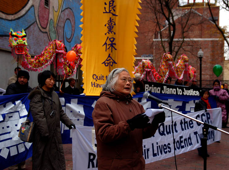 十二月二日中午,在波士顿中国城,「天灭中共」、「退党保命」、「九评神威」等横幅标语遍及中国城楼牌公园;腰鼓表演和大合唱吸引了路人驻足观看。同时,集会现场播放了电视录像、退党电话录音,将退党、退团及退队的故事及喜悦分享华埠人士。