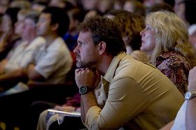 ![]() 剧院经理大卫•罗维尼(David Rovine)介绍演出的成功并指出共产国家的迫害本质 |
