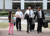 法庭内的庭警很多已知道法轮功的真相,最近纷纷向法轮功学员微笑、打招呼,有的向学员竖起大拇指,有的祝福学员,没有过往的冷漠表情。在法庭外,人们都乐意去接受法轮功学员发放的资料。有的看到法轮功学员拿着展板进出法庭,主动的要资料,还关心的问“你们的案子怎么样了?”在法庭上,法轮功学员要求法官明察秋毫,把那些在新加坡协同中共参与迫害法轮功的真正罪犯绳之以法,还法轮功学员清白。