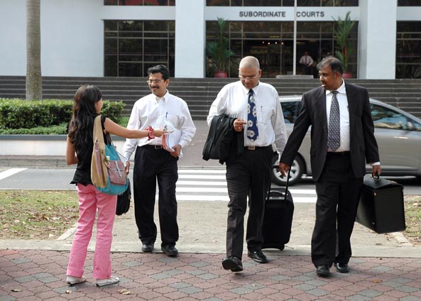 新加坡法庭外 法轮功学员继续讲真相(图)