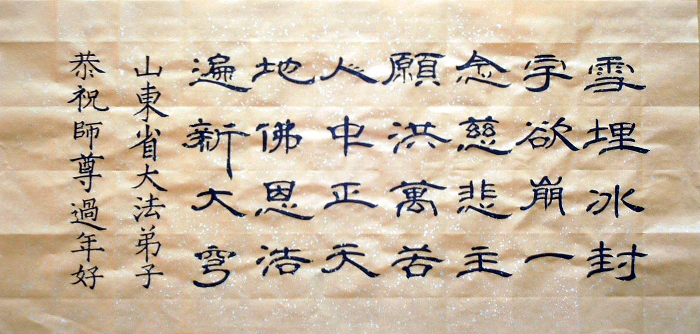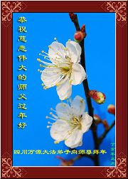 新年即将来临,我是山东电力系统的一名大法弟子,我代表山东电力系统大法弟子祝愿慈悲伟大的师尊新年快乐!请师父放心,我们一定牢记师尊的教诲,踏踏实实的做好三件事,救度众生,圆满随师还!