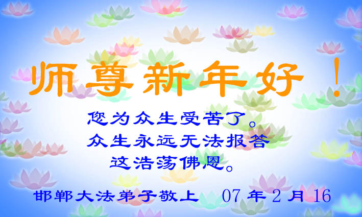 师父您好!我们纺织系统大法弟子给您拜年!恭祝师尊新年愉快!