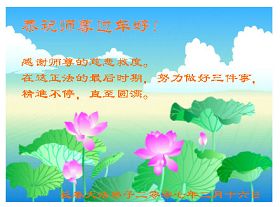 弟子们一定铭记无上荣耀的使命,紧跟正法進程,做好三件事,迎接无限美好辉煌灿烂的那一天!