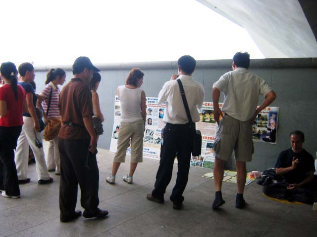 面对新加坡当局、警察的威胁、取走展板等剥夺信仰者讲真相权利的行为,法轮功学员没有退缩,依然到滨海公园讲真相。去年七月份李光耀邀请迫害法轮功的元凶之一李岚清来新后,新加坡法轮功学员先后收到由李光耀操控的司法部起诉的四起诬告案。而当时在滨海公园,新加坡警察取走展板,威胁法轮功学员在一周内不能放展板等,但法轮功学员没有屈从这种威胁。面对强权与威胁,海外的法轮功学员也到新加坡给予当地学员的支持与帮助。他们曾到过新加坡法庭“发正念”、街头巷尾向民众讲真相、到滨海公园炼功促三退。有时候知道真相的中国人也会告诉新加坡法轮功学员: