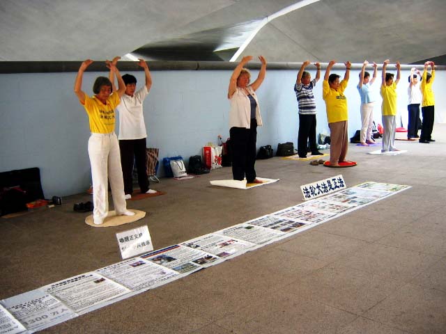 ![]() 法轮功学员在滨海公园炼功洪法讲真相 |