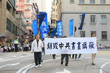 经过两个多小时后,游行队伍抵达中联办,香港退党服务中心代表在正门前宣读公开声明,再次指出:退出中共是不与邪恶为伍的精神觉醒,是天灭中共到来时生命的自救,也是中华民族和平过渡到没有共产党的社会的最佳方式。