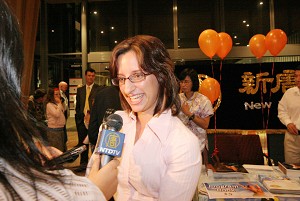 报道介绍说:最近协办方亚洲文化协会宣布还会有另一场演出,那么会在明天进行。这场盛会的乐团伴奏、经典舞蹈艺术、音乐都是由新唐人带来的。新唐人电视台总部在纽约,是一家全球华语电视网络,他们最早在二零零四年举办这样的晚会,今年是第四届,而且今年会在全球三十多个城市巡回演出,经典的舞蹈和音乐展现了中华文化五千年的历史。