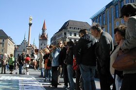 二零零七年三月二十七日,大纪元网上记录的退出中共党团队组织的人数突破了两千万。为了庆祝这一历史的时刻,声援主题为“中共邪灵的根都拔出来了”的系列活动,慕尼黑和周边的法轮功学员再次举办活动,希望在惊心动魄的天灭中共天象到来之前,多给中国人一次机会,只有远离邪党方能得救。同时将中共的倒行逆施暴露在光天化日之下,唤醒德国和世界民众的良知。