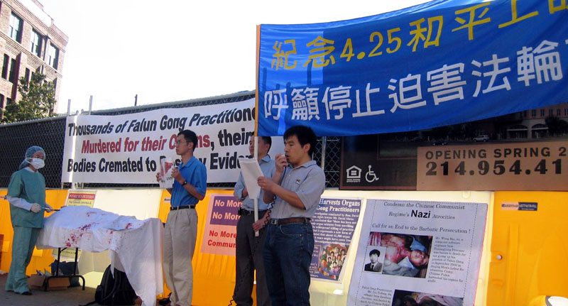 他继续说到:“有法轮功学员提到过每天都是‘四•二五’,为什么这么讲呢?因为当年是‘四•二五’这一天学员去请愿,呼吁不要骚扰炼功,要保证炼功,拥有炼功的权利。但是从九九年七•二零以后,中共对法轮功进行迫害,它的迫害没有停止过,从那天开始它每天都在迫害法轮功,作为我们法轮功学员每天都在反迫害,呼吁全世界所有善良的人来制止迫害。每一天每一个机会我们都去向人们尽可能的表达我们的心声,希望每个善良的人都来制止中共的邪恶迫害。