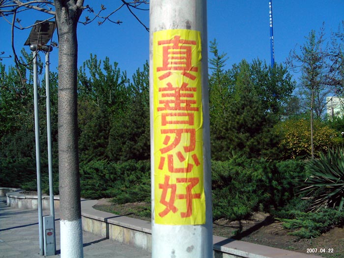 “八年来不断的有人明白法轮功被迫害的真相、中共的邪恶,以及了解了法轮大法的美好,走入修炼中来。我们也深知还有许多人不了解、被中共的谎言蒙蔽,不愿了解法轮功真相的人们。在此我们告诉大家,我们会一如既往的恪守真善忍的原则,不断的把真相和法轮大法的美好带给人们,同时也希望同胞们能抓紧有限的机缘,认清中共的邪恶,不要再被欺骗,不要随天灭中共而做陪葬。”