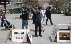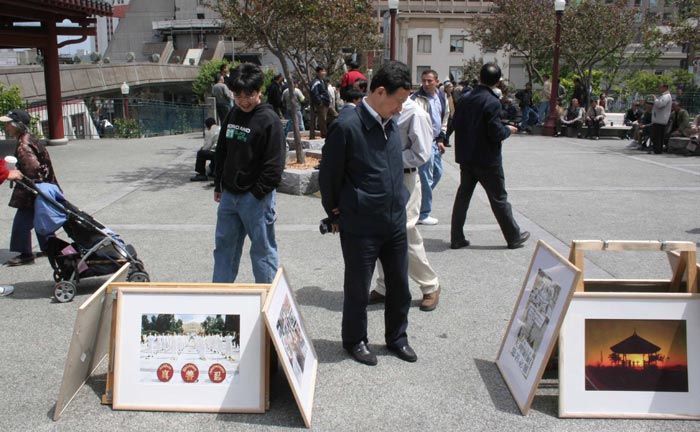 旧金山中国城花园角广场是法轮功学员经常来炼功、讲真相的地方。当天,一些学员在炼法轮功功法,其他的学员向游客讲述法轮功的真相。有的人看到学员炼功的姿势跟着比划着学,有的游客表示要在媒体上将迫害讲出来。