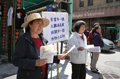![]() 法轮功学员在中国城主要街道派发资料 |