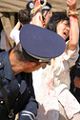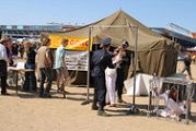 在捷克法轮大法学会的帐篷前,学员模拟演示了中共用以迫害法轮功的酷刑。一位女士非常认真的观看酷刑演示,这场景深深触动了她。她的表情很痛苦,对学员说,“在(捷克斯洛伐克)共产党时期我也被关进监狱,但没有承受这种折磨。”