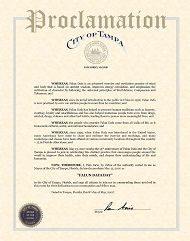 鉴此,我,帕姆·爱欧理奥(Pam Iorio),坦帕市市长,在此褒奖二零零七年五月十三日为: