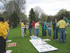 ![]() 学员们介绍法轮功及发生在中国的迫害真相 |
