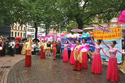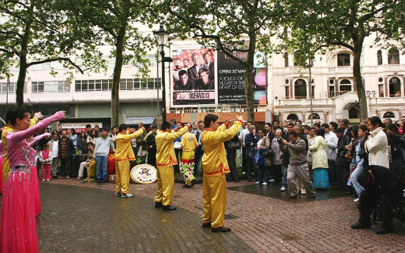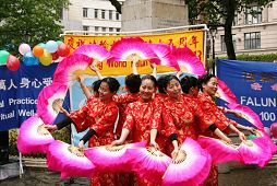 ![]() 法轮功学员以文艺表演及法轮功功法演示来庆祝节日 |