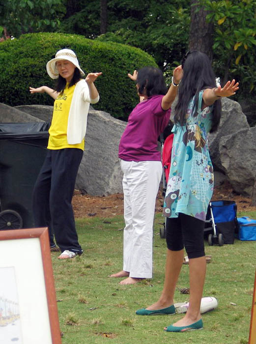 五月十三日的石头山阳光明媚。石头山是一块非常完整的大的象山一样的圆石头,位于亚特兰大市的东南边,是美东南区的名胜之一,每年有八百多万来自方圆百里的游客。下午两点到七点,石头山体雕塑下的公共大草坪上洋溢着节日的气氛,“法轮大法好”、“真、善、忍”、“世界大法日”各种彩色的横幅在草坪上格外醒目。法轮功学员一边做真相展示,一边集体炼功。之后,举行丰富多彩的集体庆祝活动,有诗朗诵、乐器演奏、小弟子背诵《洪吟》和集体演唱。