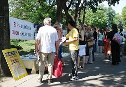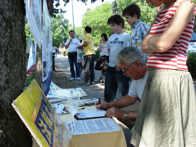 ![]() 人们签名谴责中共对法轮功的迫害 |