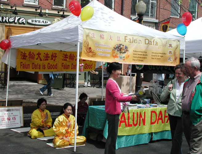 ![]() 法轮功学员在普林斯顿艺术节上设置展位讲真相 |
