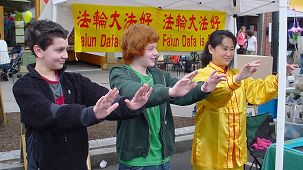 许多西方人士对优美的功法十分感兴趣,愿意学功的人也很多。当他们听说当地学员可以免费教功,各种资料可以从网上免费下载后,都高高兴兴拿了炼功点的信息和网址,表示一定要回家查看。还有好多人当场学功,法轮功学员教他们试着炼了第一套功法后,都说感觉很好,很喜欢。