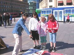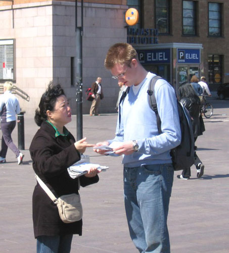 【明慧网二零零七年五月二十一日】二零零七年五月十九日,赫尔辛基法轮功学员再次于市中心火车站旁向民众介绍发生在中国的迫害详情。