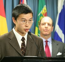 二零零七年五月二十四日,法轮大法学会代表、外交部前亚太司司长资深国会议员大卫•乔高(David Kilgour)、前加拿大安全情报局决策计划主管、现任加拿大民主联盟国家安全问题资深成员大卫•哈瑞斯(David Harris)、以及两位辽宁籍受迫害法轮功学员家属在加拿大国会联合召开新闻发布会,促加拿大政府撤销对薄熙来的邀请,禁止薄熙来入境,并对其进行刑事犯罪调查。