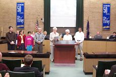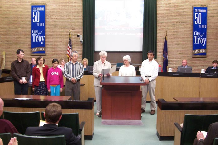 ![]() 密西根州特洛伊市(TROY)市市长路易斯·西林宣读褒奖令 |