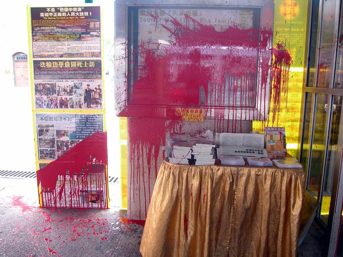 ![]() 香港学员真相点遭凶徒袭击,被泼红油漆 |