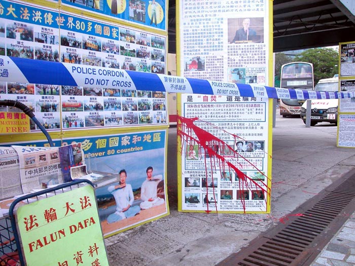 遭破坏的真相展示点位于九龙尖沙咀天星码头,据目击凶案的法轮功学员表示,当天下午一点四十五分左右,两名大约二十五岁的陌生中国男子去到现场时,突然分开,一人把右边正在播放真相影片的液晶显示器打落地,另一人向左边摆真相资料的桌子泼红漆,完事后随即跑向码头旁的的士站逃离,整个过程大约只有一分钟。警方接报后封锁现场,取走相关证物并录取口供,将案件定为刑事毁坏案。