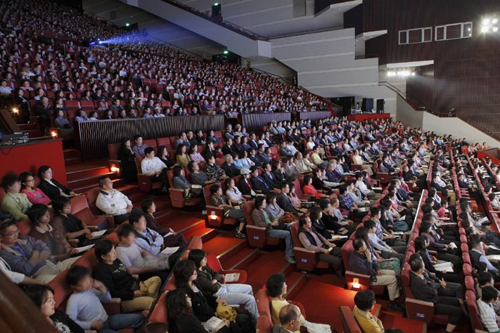 ![]() 台湾基隆市国中国小学校的舞蹈班、民俗班师生观赏四月十七日台北国际会议中心下午场「神韵艺术团」的演出 |