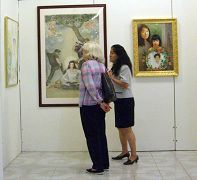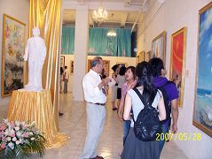 中午时分至傍晚,人们三三两两的走进展厅,络绎不绝,时不时的展厅里满是看画的人。讲解员们热心的介绍着每幅画的背景和涵义,回答着看画人的问题。