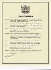 鉴于,更多的加拿大人正在修炼法轮功,净化他们的心灵,使身体充满活力,拥抱一个和平和道德高尚的社区;并且