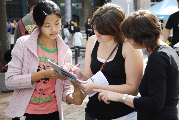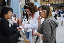 在活动快结束时,有一位西人女教师来了,看了介绍,她告诉一位法轮功学员:“这样的迫害太残忍,但您看到了,还有那么多的人很冷漠。我们应该征集更多的签名或以其它的方式给中国政府更多的压力,否则他们是不会改变的。我很想去中国,但我要等到迫害都停止了,我才会去。我会将你们的故事传递给大赦国际,让你们有更多的机会去发言。”