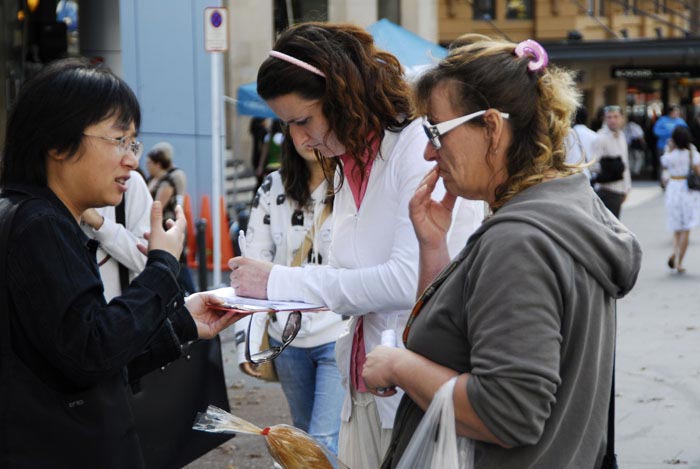 整个活动中,人们都静静的倾听着真相,不断有人在征签本上签下了他们支持的名字。