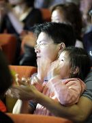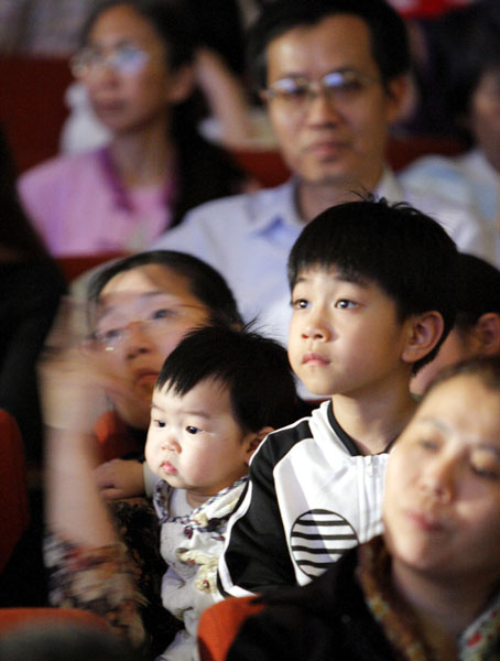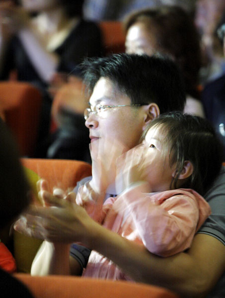 ![]() 纯善纯美的节目,许多民众不分男女不自觉流下喜悦感动的泪水 | ![]() 小朋友目不转睛盯着台上看 | ![]() 节目精彩的大人小孩都热烈鼓掌 |